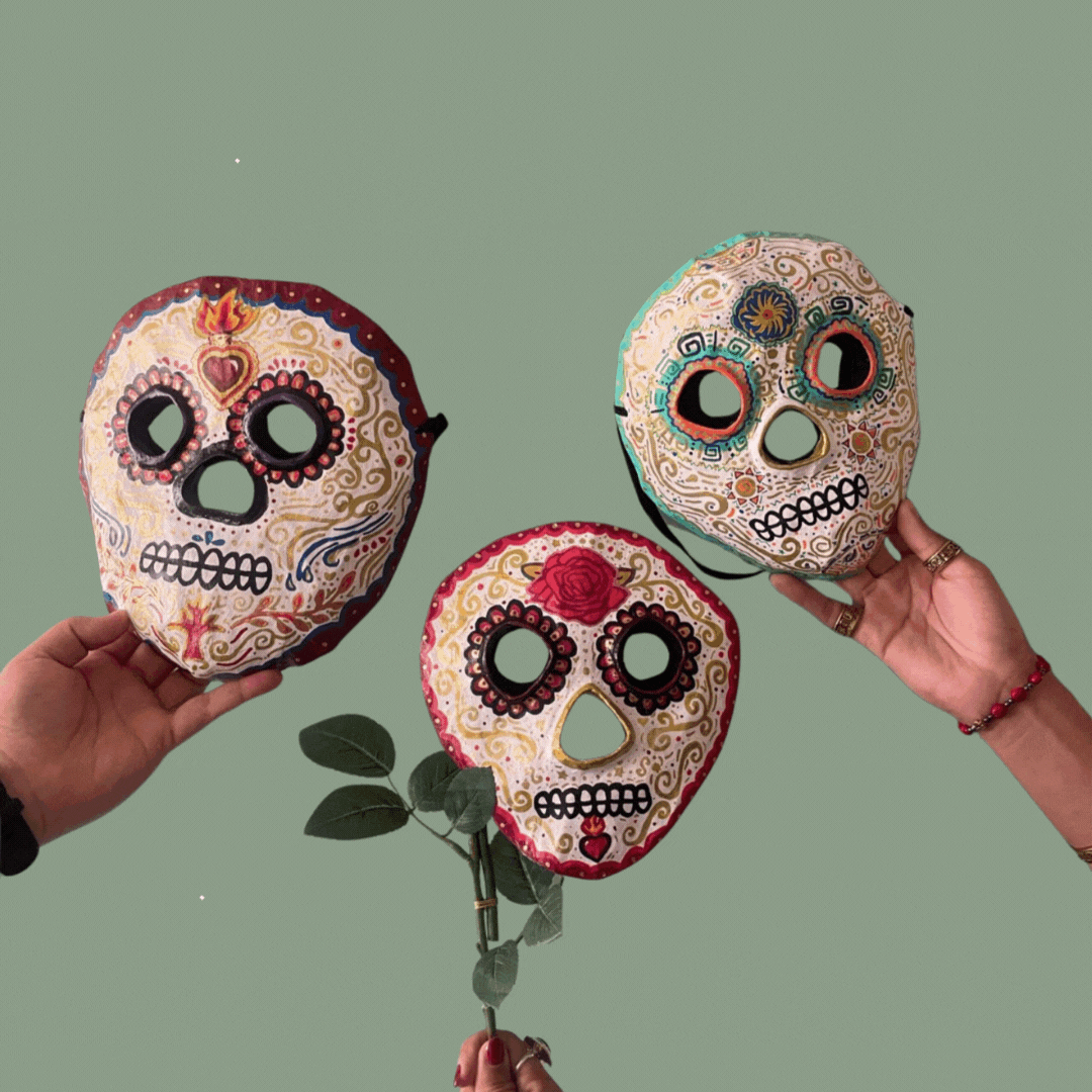 There’s a particular yearning that comes with distance from the smells, the colors, the cadence of a language spoken in what feels like another lifetime. While crafting the masks, I often listened to cumbias and rancheras, imagining the visuals moving to the rhythm of the songs.