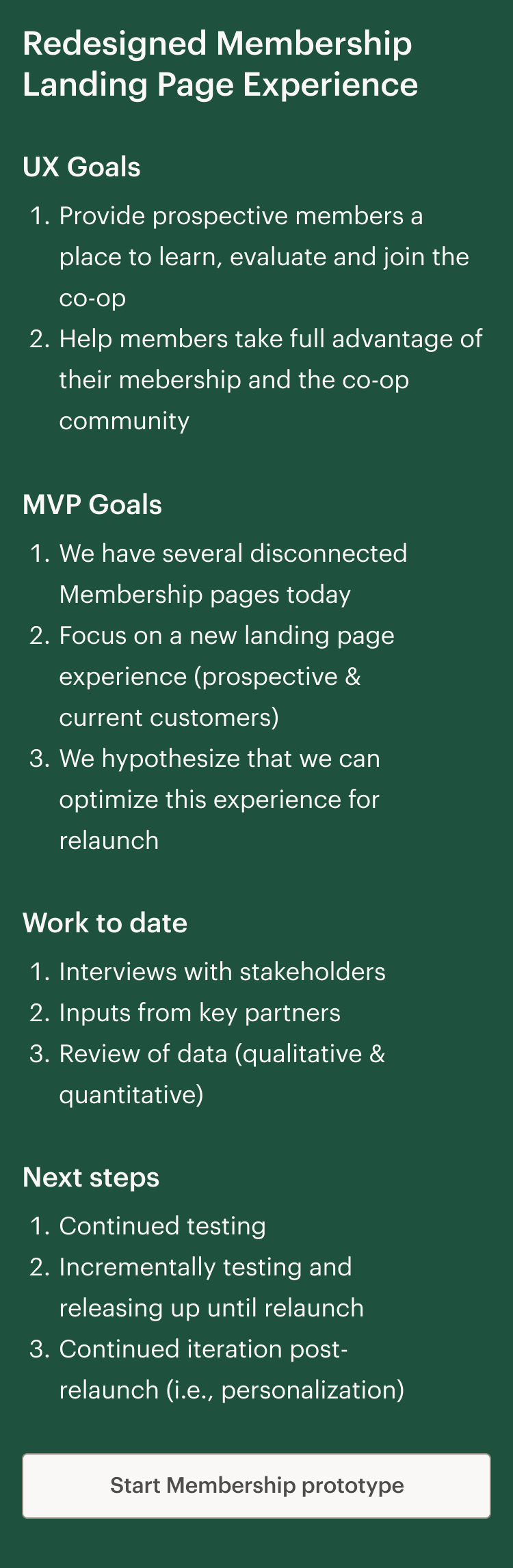 In redesigning the membership experience on REI.com, our team had successes and challenges. Despite struggles, relaunch contributed to our growth and expertise in creating a more test and learn digital environment. This major initiative breathed new life into the digital experience for new and existing members, marking a success in starting to enhance the membership journey.